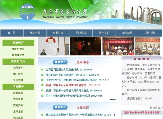 茂名市自來水公司始建于1963年,經過四十多年的建設,已發展成為國有企業水務行業內頗有建樹的典范。目前,市區日供水能力達到3 3.5萬立方米(其中:河東水廠2 0萬立方米,河西水廠1 3.5萬立方米)。公司致力于以人為本的城市供水服務理念,積極探索以人為本,和諧發展的路子,構建了有自身特色的人本管理,取得了良好的社會效益。促進了城市供水與社會的和諧發展,進一步提高了城市供水服務水平,先后榮獲了“廣東省五一勞動獎章”等榮譽稱號。