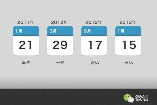 2013年,微信活躍用戶將達5.4億以上,超過新浪微博。目前活躍用戶數(估計1.2億左右)