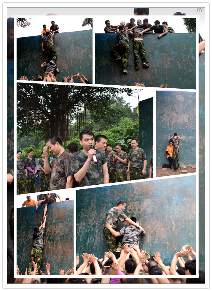 翻過這片墻,你就畢業(yè)了!稱之為畢業(yè)墻。在這一個(gè)項(xiàng)目里,最能呼應(yīng)我們的主題——眾志成城!