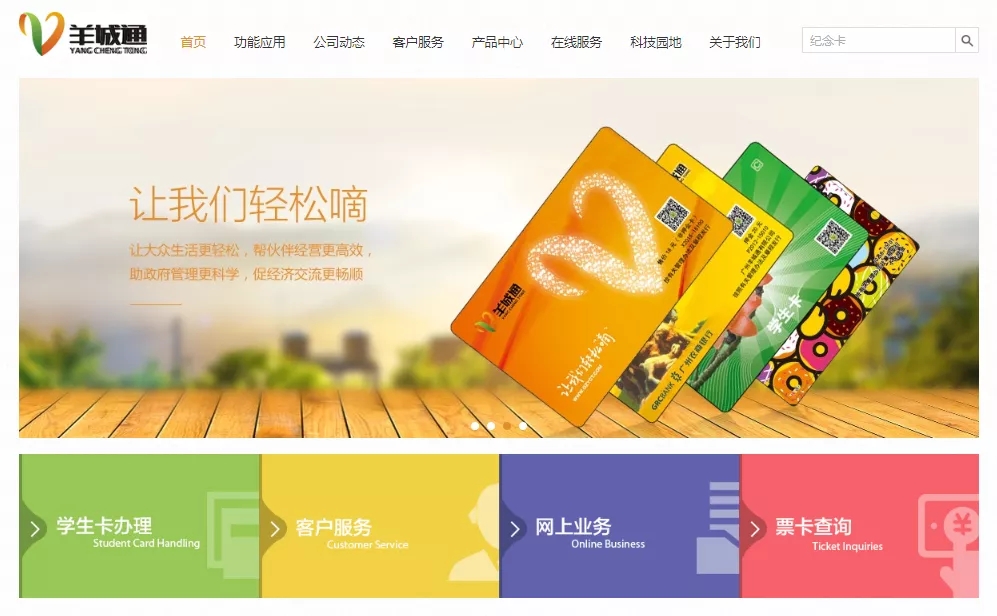 廣州羊城通有限公司,成立于1999年,是直屬廣州市公共交通集團有限公司的國有法人獨資企業。公司以“讓大眾生活更輕松,幫伙伴經營更高效,助政府管理更科學,促經濟交流更協調”為使命,秉承“服務100”的經營思想,圍繞“輕松嘀卡,便利生活”的服務理念,一直致力為廣大市民和客戶提供方便快捷的電子支付服務。